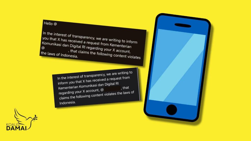Jakarta, 19 Juni 2025 – Kami, Koalisi Demokratisasi dan Moderasi Ruang Digital Indonesia (Koalisi Damai), koalisi yang terdiri dari 16 organisasi masyarakat sipil dan individu yang memiliki perhatian atas isu moderasi konten di Indonesia, mengecam permintaan Kementerian Komunikasi dan Digital (Komdigi) terhadap X untuk menurunkan konten bertema sejarah di sejumlah akun di platform tersebut. Permintaan takedown tersebut menarget setidaknya dua akun, yakni @neohistoria_id, dan @perupadata. Keduanya mengunggah konten kritis terkait kasus pemerkosaan pada kerusuhan Mei 1998. Kasus ini kembali menjadi perdebatan publik akibat pernyataan sejumlah pejabat pemerintah yang membantah terjadinya kekerasan seksual yang sistematis dalam peristiwa itu.